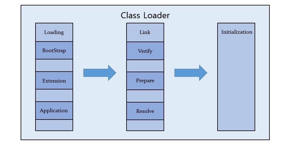 클래스 로더는 Loading, Linking, Intialize의 순서로 진행됩니다.