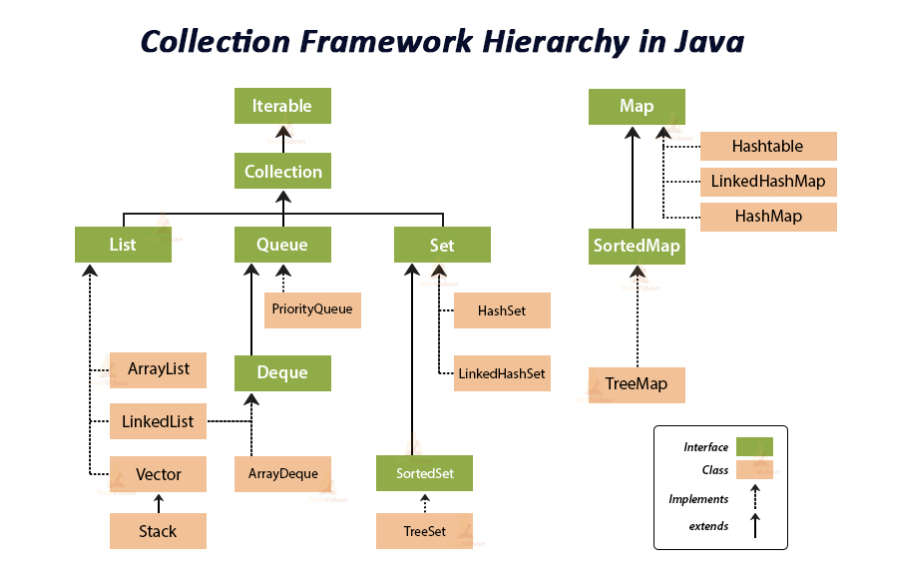 | Collection | List | O | O | ArrayList, LinkedList, Stack, Vector |