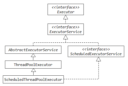 그렇다고 Executor 인터페이스는 엄격하게 비동기적인 실행을 요구하지는 않습니다. 간단한 케이스로 Executor는 Thread에서 제출된 작업을 즉시 실행할 수 있습니다. 하지만 일반적으로는 각기 부여된 Task에 대해서 새로운 Thread에서 동작하도록 합니다.