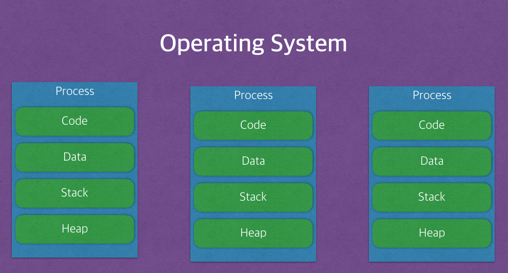 - 운영체제로부터 프로세스는 각각 독립된 메모리 영역을 할당받습니다.
