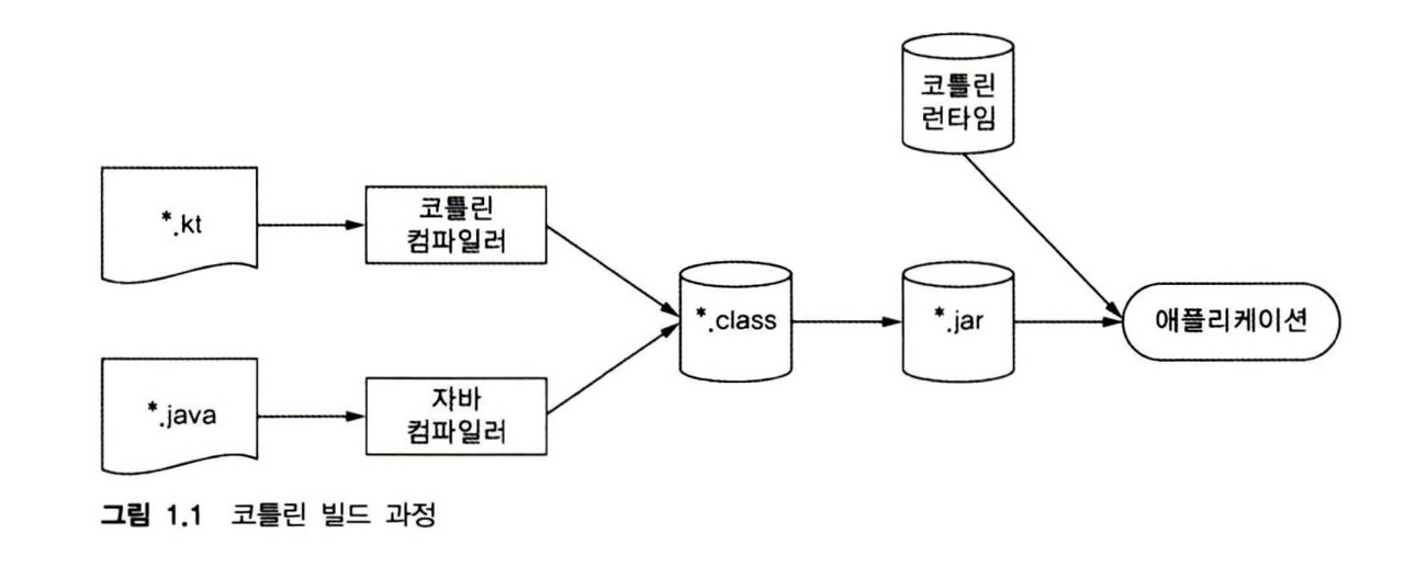 코틀린 컴파일러는 자바 컴파일러가 자바 소스코드를 컴파일할 때와 마찬가지로 코틀린 소스코드를 분석해서 .class 파일을 만들어 냅니다. 코틀린 컴파일러는 코틀린 런타임 라이브러리에 의존합니다. 런타임 라이브러리에는 코틀린 자체 표준 라이브러리 클래스와 코틀린에서 자바의 API 기능을 확장한 내용이 들어있습니다.