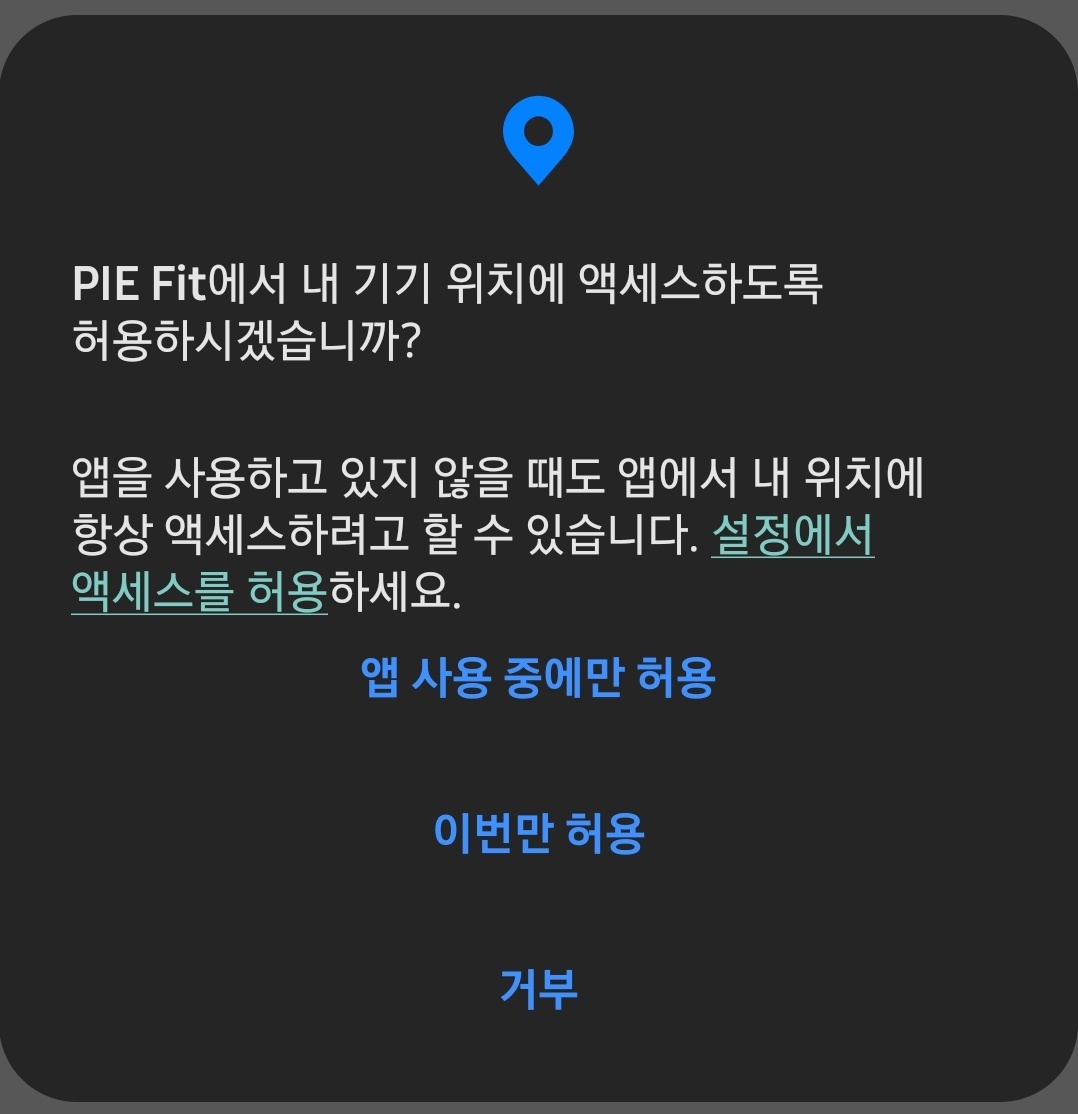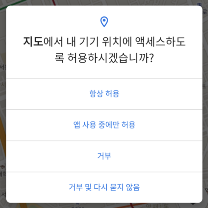앱의 위치정보 권한 요청