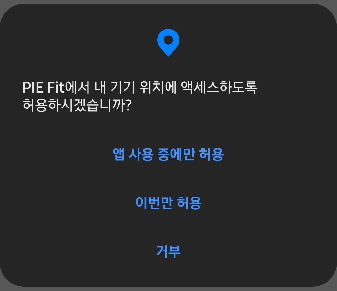 옵션만 존재합니다. 대신 사용자는 설정 페이지에서 백그라운드에서 위치 정보가 필요하다면 Manifest에서 BACKGROUND 권한을 받아서 아래의 이미지의 요구에 따라야 합니다. 또 권한을 거부하더라도 앱 사용에 지장이 없도록 해야 합니다.