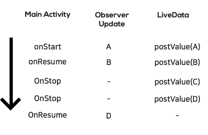 Observer의 수명 주기가 비활성 상태(예: 활동이 백 스택에 있음)이면 Observers어떤 LiveData 이벤트도 수신하지 않습니다. - 수명 주기를 더 이상 수동으로 처리하지 않음