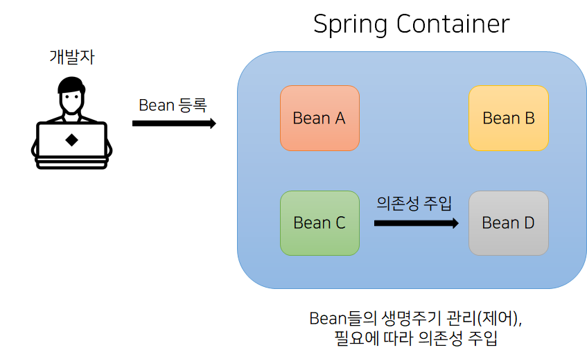 객체의 생성부터 소멸까지 객체의 모든 생명주기를 개발자가 아닌 컨테이너가 담당하는 것을 말합니다.