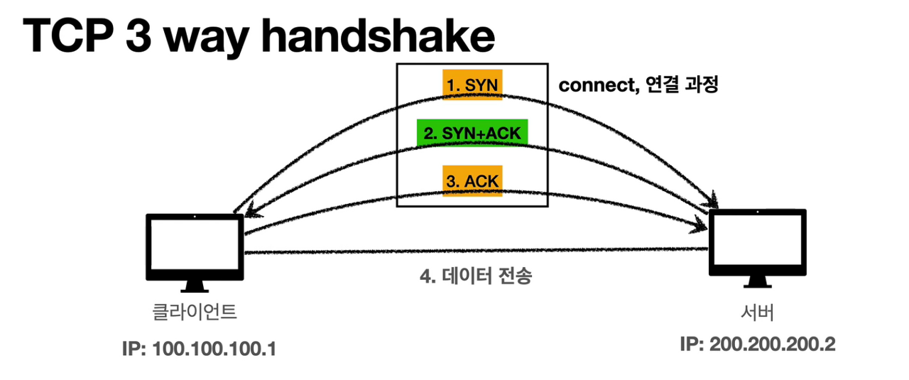 - 클라이언트에서 서버로 SYN를 보냅니다.