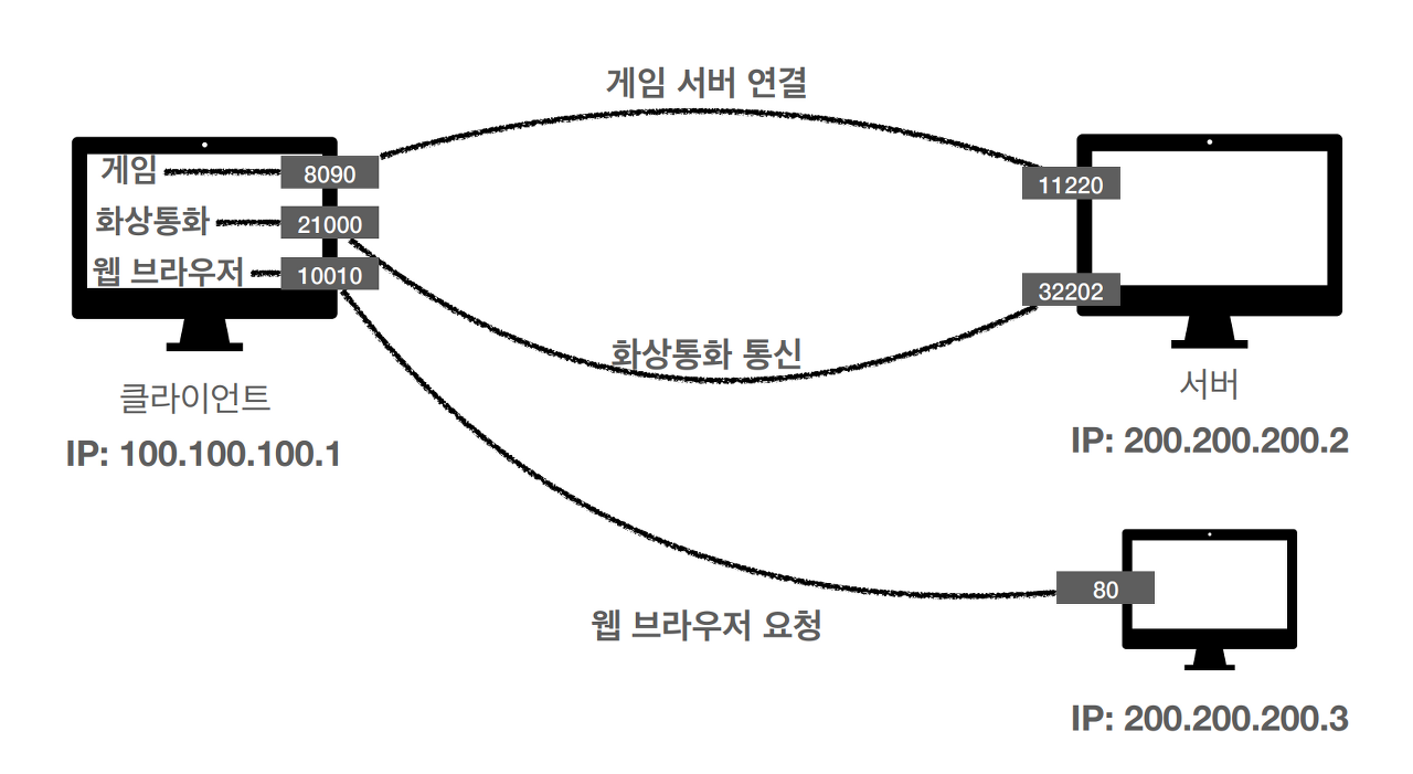 같은 IP 내부에서 프로세스를 구분하는 것입니다. IP가 아파트라면 포트는 몇동 몇호에 해당한다고 할 수 있습니다.