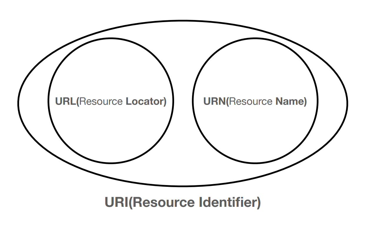 위치는 변할 수 있지만, 이름은 변하지 않습니다. 하지만 실제로 URN 이름만으로 실제 리소스를 찾을 수 있는 방법이 보편화 되지 않았습니다. 따라서 URI와 URL을 같은 의미로 생각하면 됩니다.